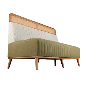 Ahşap ayak yapısı sayesinde sağlam ve dengeli bir duruş sunan bu model; cafe, restoran, otel, lounge ve butik mekânlarda rahatlıkla tercih edilir. Duvar önü yerleşimlerde, düz hatlı oturma planlarında ve modüler kombinasyonlarda kullanıma uygundur.