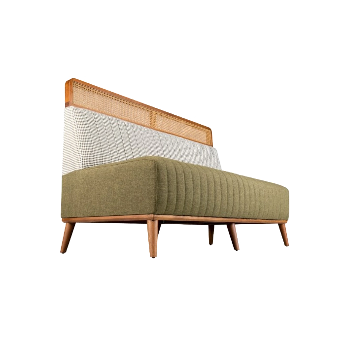 Hasır Sırtlı Yeşil Sedir Koltuk | Dilimli Kumaş – Ahşap Ayaklı