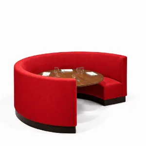 Kırmızı Yuvarlak Booth Loca Koltuk – 5 Kişilik Cafe ve Restoran Oturma Alanı