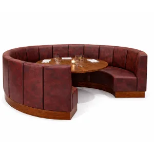 Grup oturumları için ideal olan yuvarlak loca koltuklar, 4–6 kişilik konforlu kullanım sunar. Restoran ve cafe projelerinde en çok tercih edilen modeller arasındadır.